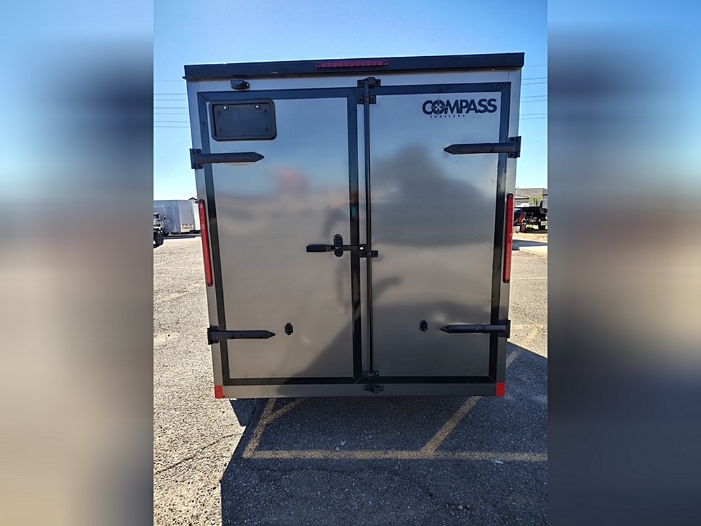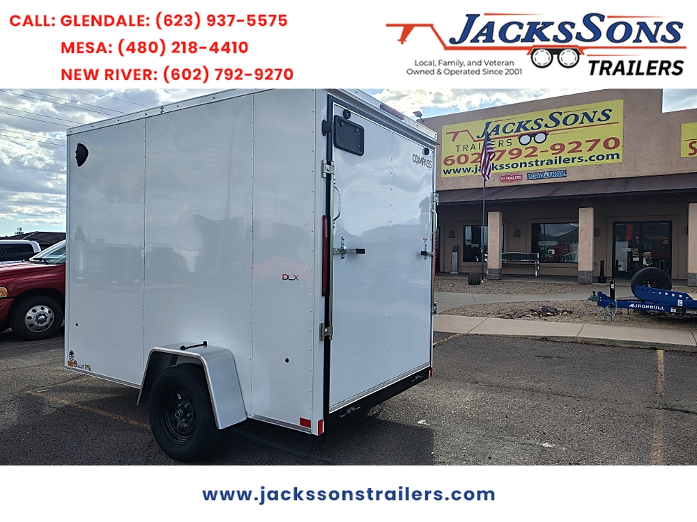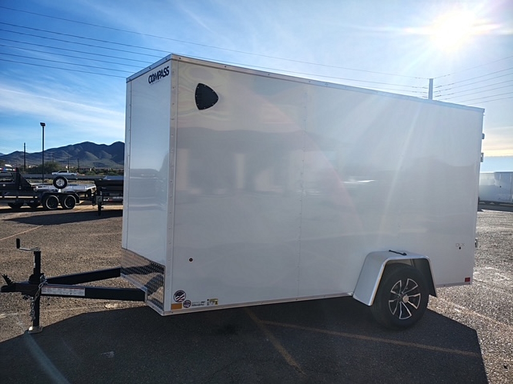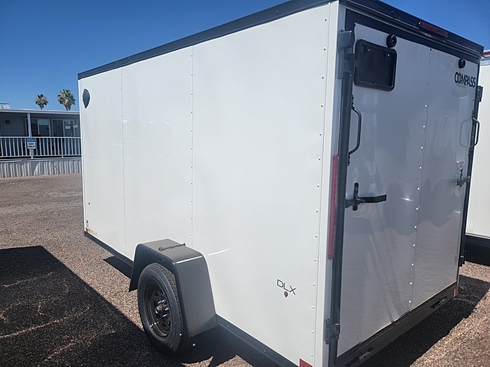 **STANDARD FEATURES** 10' x 6' Compass Indigo DLX Enclosed Cargo Trailer 3 000 lb GVWR Flat Top Roof Design V-Nose…