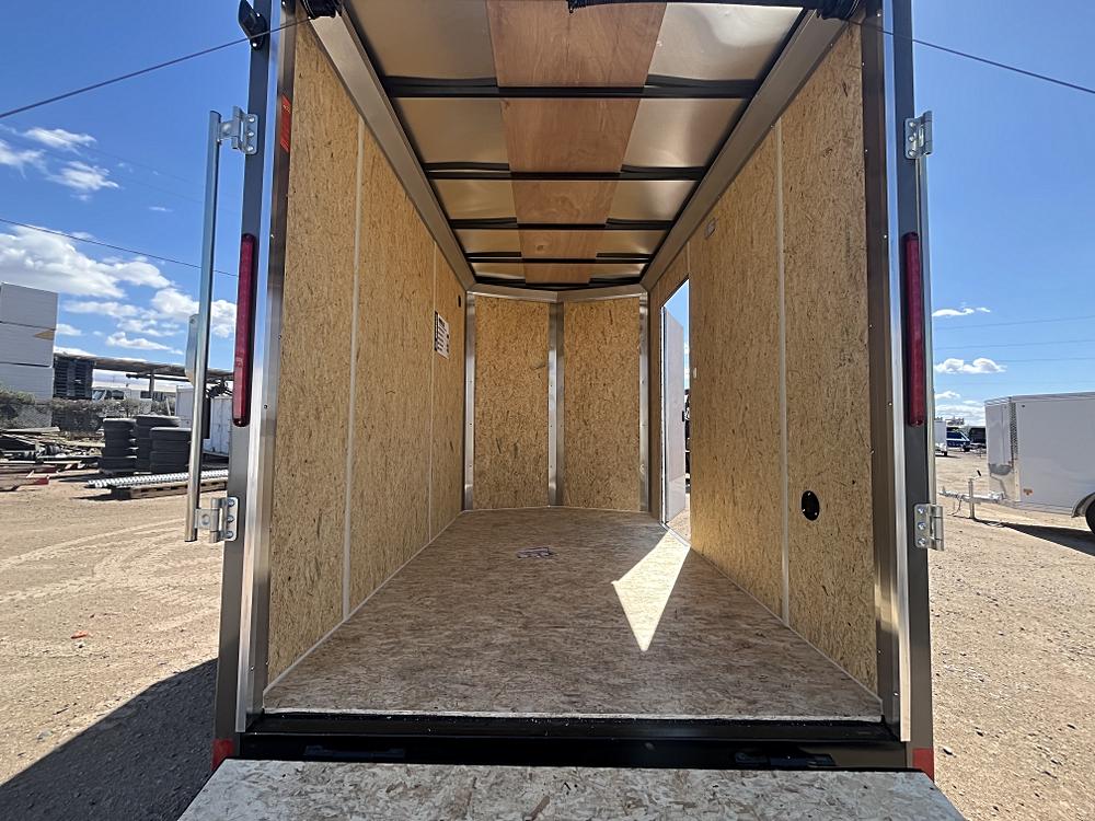 **STANDARD FEATURES** 12x6 Indigo DLX Flat Top V-Nose 3.5K GVWR W/ Brake D-Ring (5000lb) w/ Steel Plate (Bolted Backer) Color Silver/Black Trim Upgrade Wall Posts…