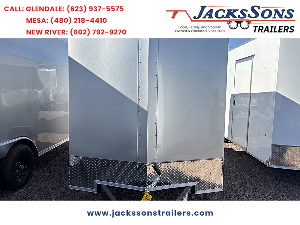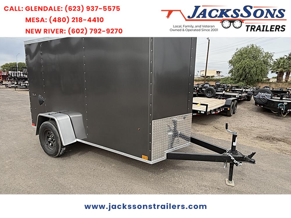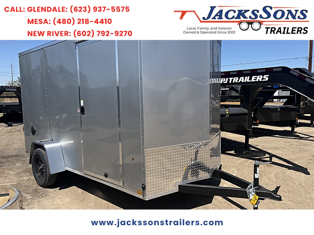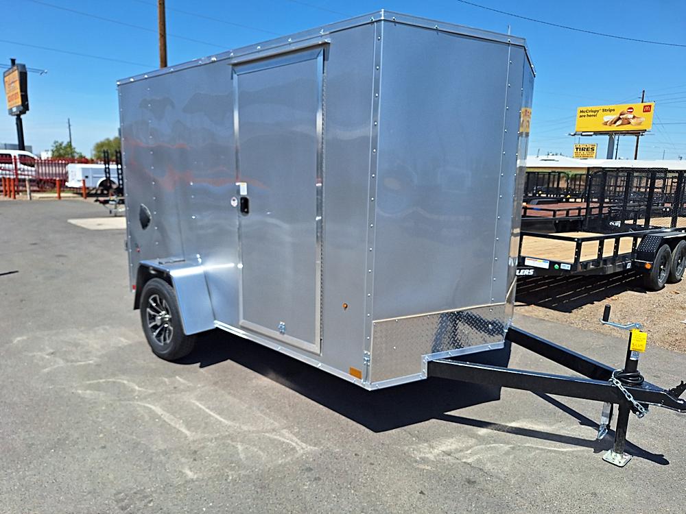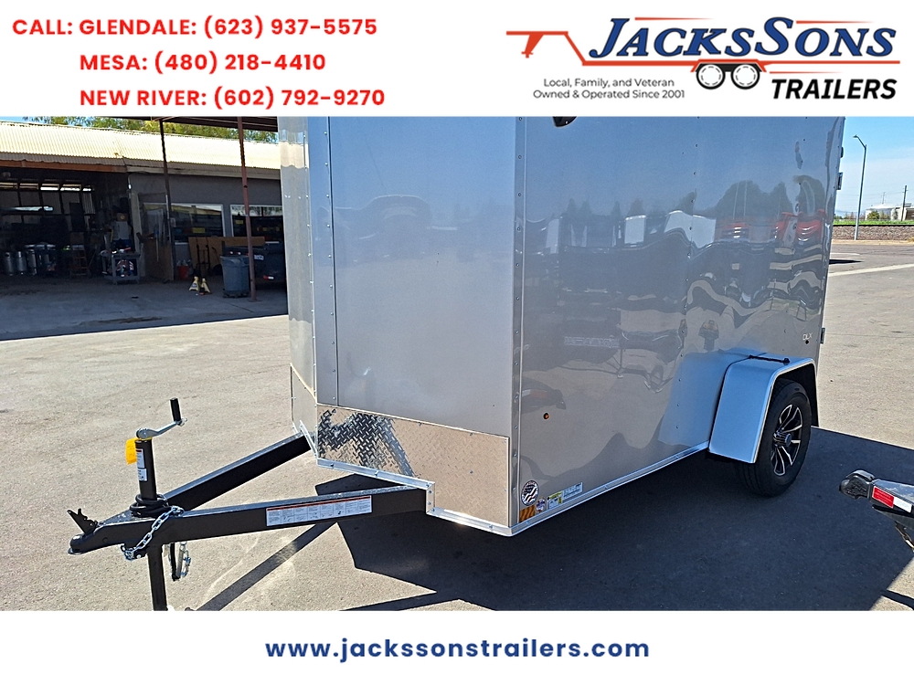 **STANDARD FEATURES** 5 x 10 Indigo DLX Flat Top V-Nose Enclosed Trailer – Silver | 3K Axle | Reduced Height…